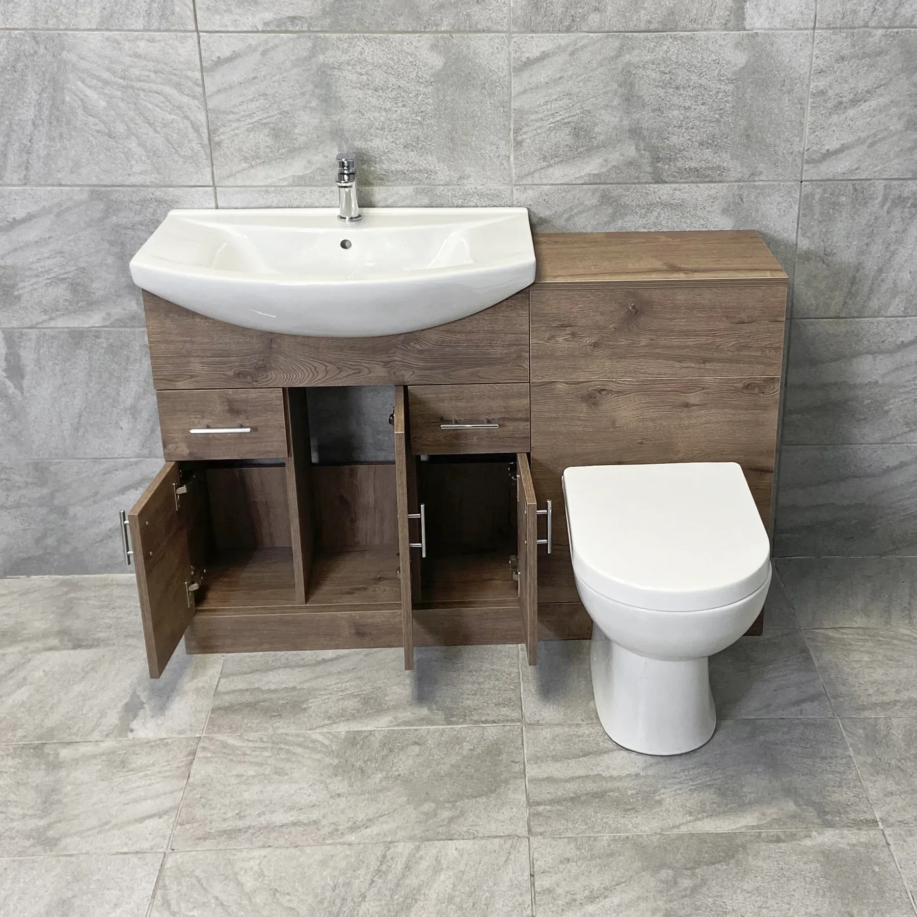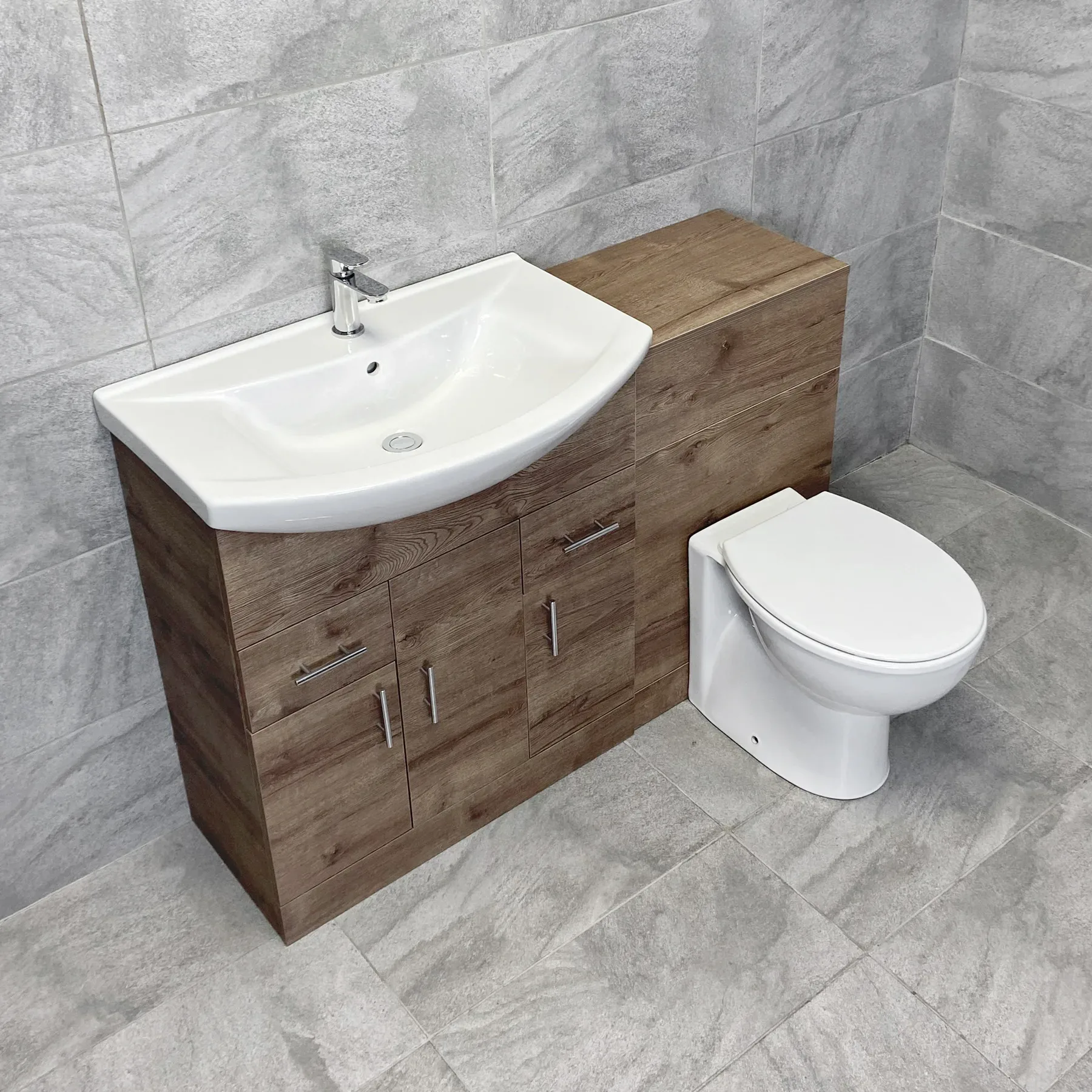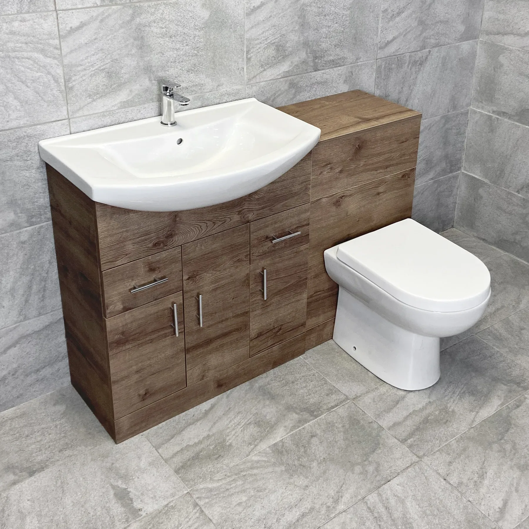 1250mm Bathroom Vanity Sink Unit & Toilet Set Suite Walnut Finish, Including: