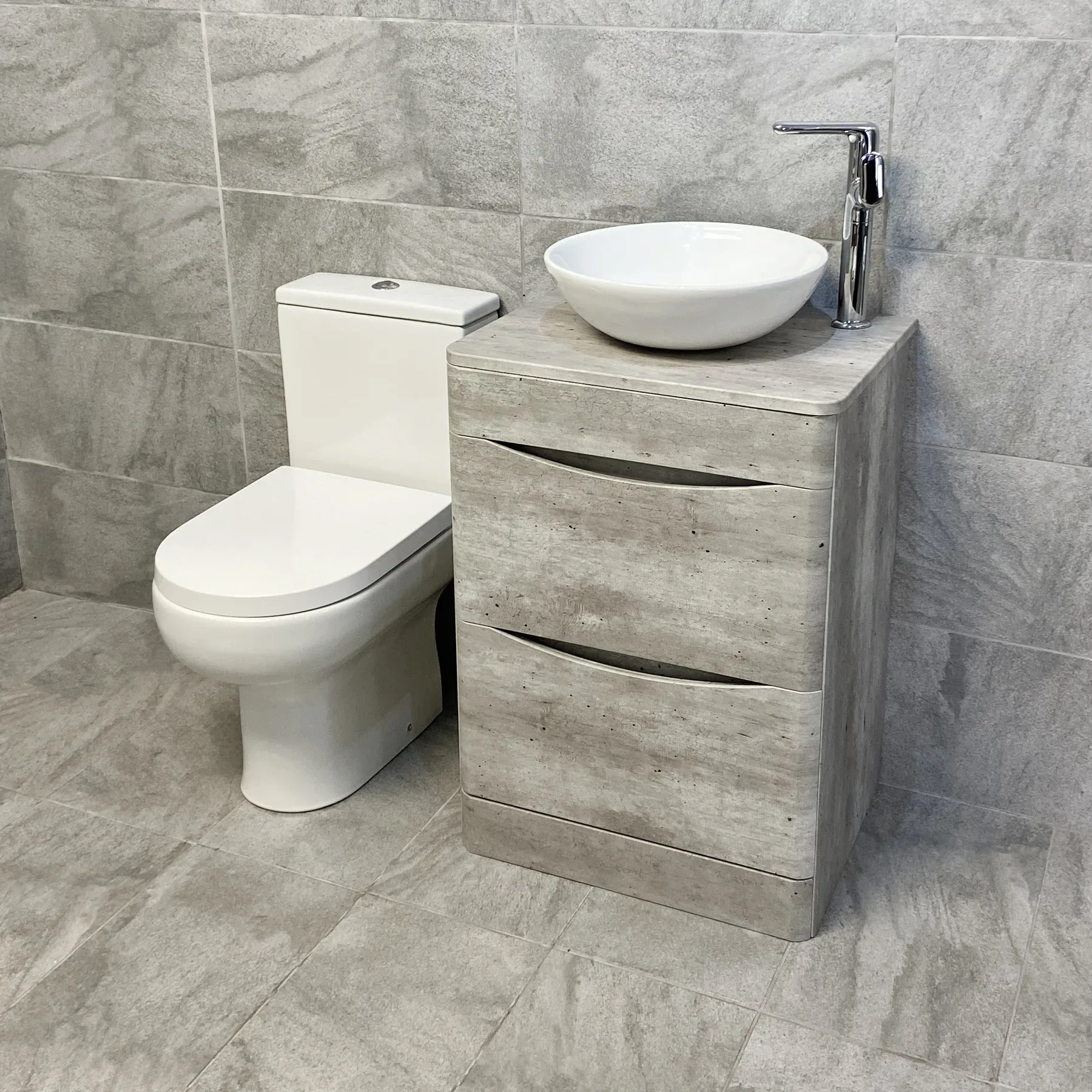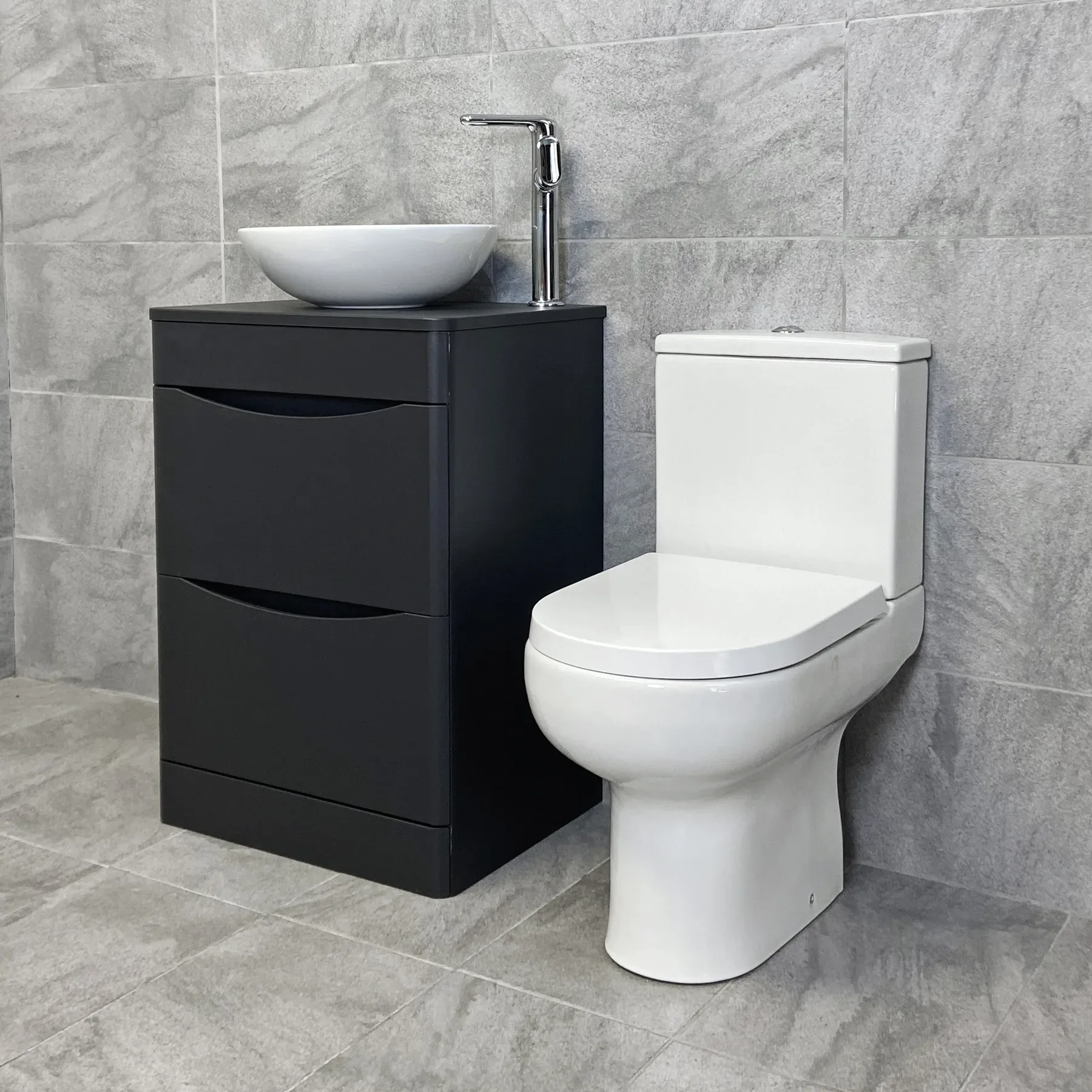 Aegean floorstanding bathroom vanity unit with a countertop Wok Basin & Tap In a choice of 4 colours, including a close coupled toilet, a great set for a bathroom, or cloakroom.