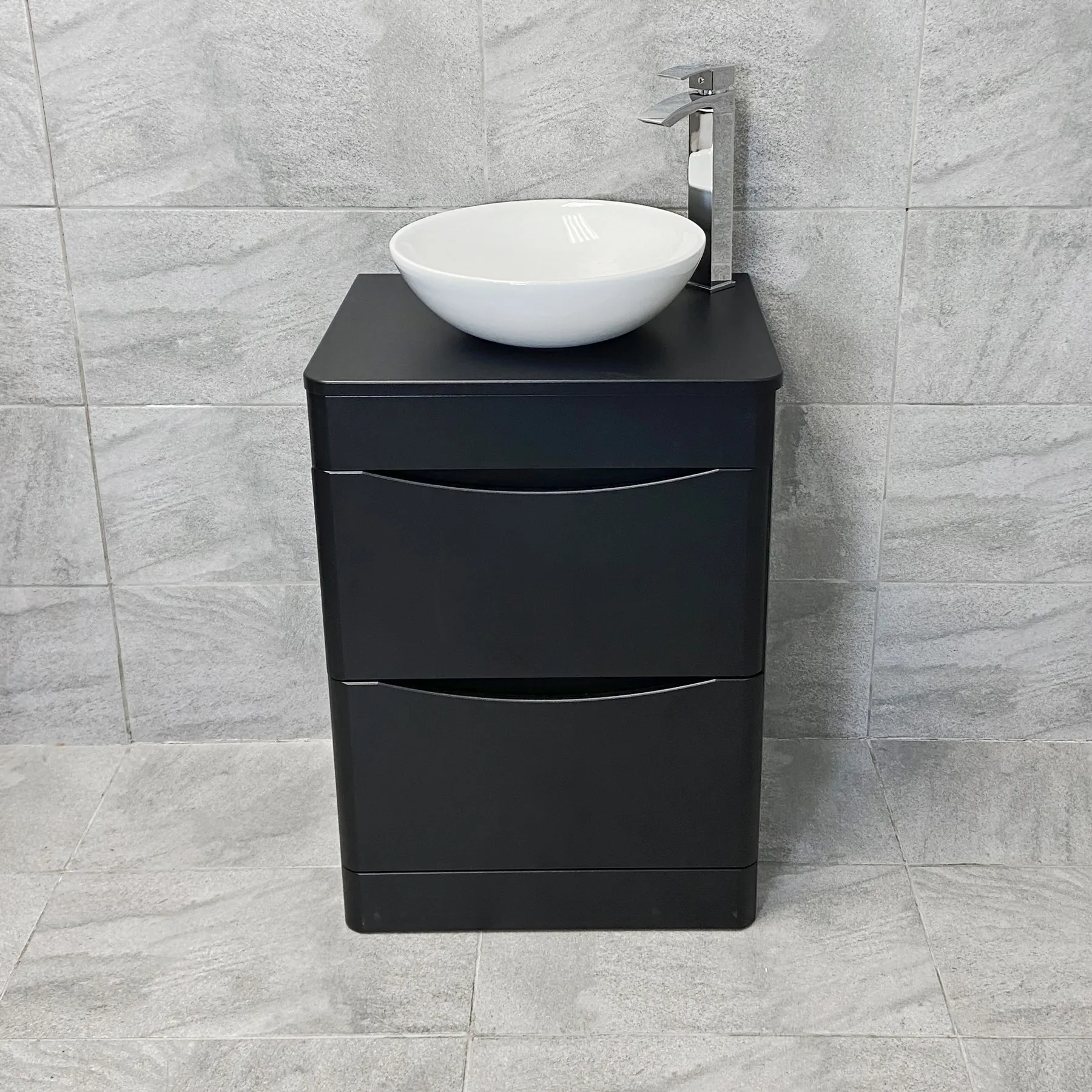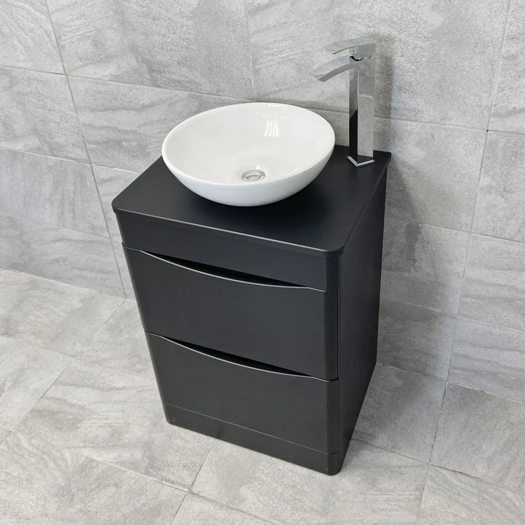 Aegean satin black floorstanding bathroom vanity unit with a Wok Basin & Tap