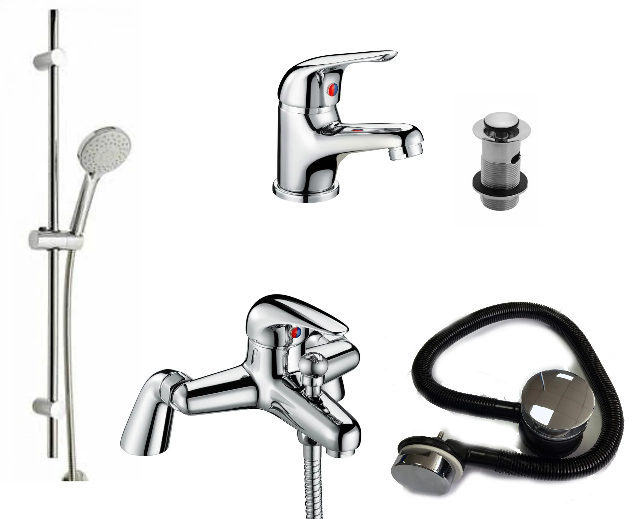 Bath Shower Mixer Tap With Slide Rail Kit Shower Head – Option to add basin tap & wastes at extra cost