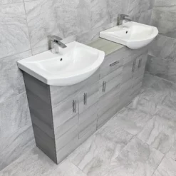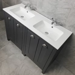 Mediterranean 1450mm Double Basin Sink Vanity Unit Set Bathroom Grey Ash Finish
