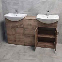 Mediterranean 1450 Double Basin Sink Vanity Unit Set Bathroom Walnut Oak Finish