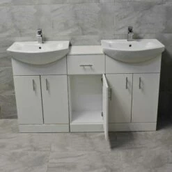 Mediterranean 1450mm Double Basin Sink Vanity Unit White Finish