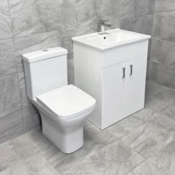 Tess White Square Vanity Unit Ceramic Basin & Short Projection Toilet Set