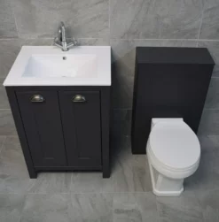 Derby Traditional Dark Grey Vanity Unit + Carlton Toilet Set Cloakroom Suite