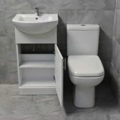 Naomi 600mm Vanity Basin Sink Unit + Short Projection Toilet Bathroom Set White