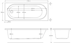 Siera 1700 X 700mm Single Ended Bath White Acrylic Straight Bathtub