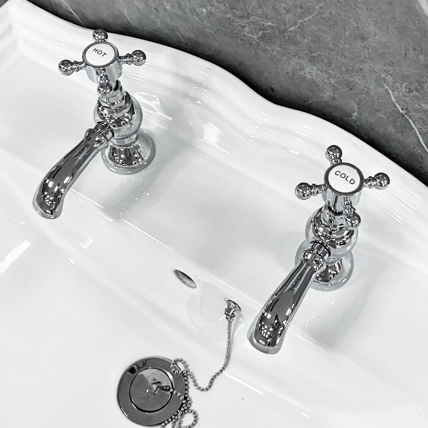 Cammie Traditional Cross Head Basin Pillar Taps Chrome & White