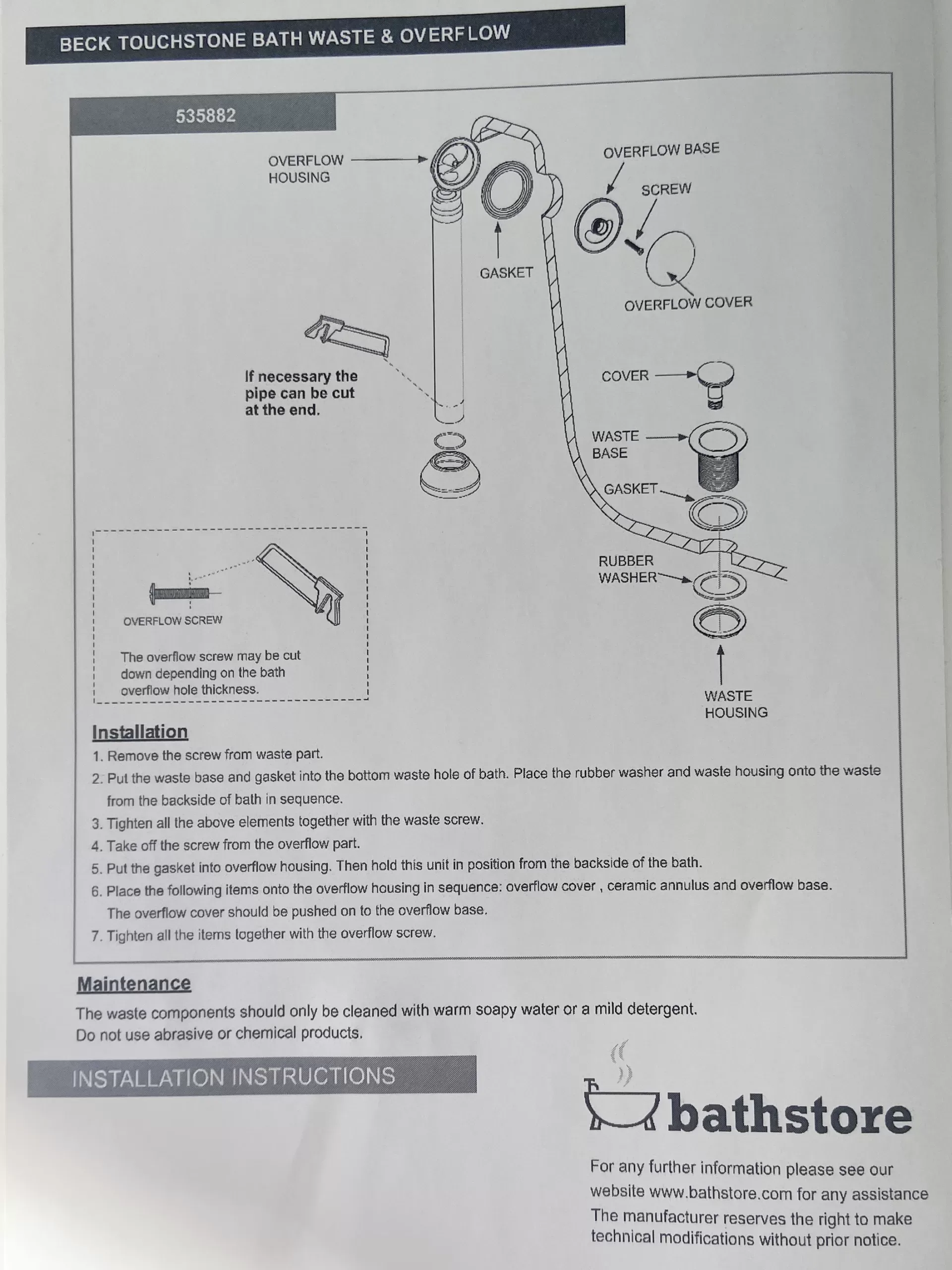 - Beck Touchstone Bath Waste & Overflow
