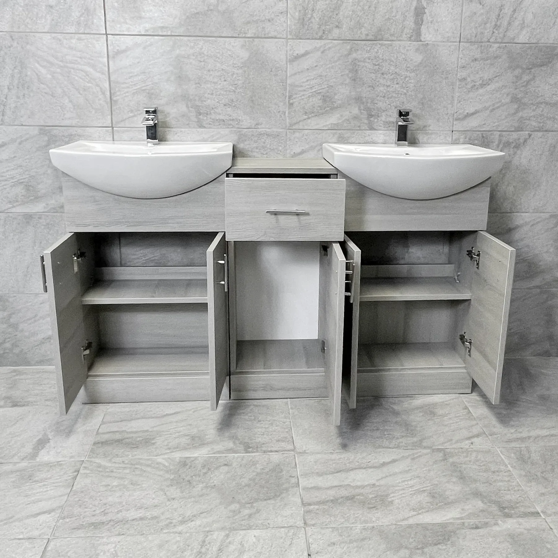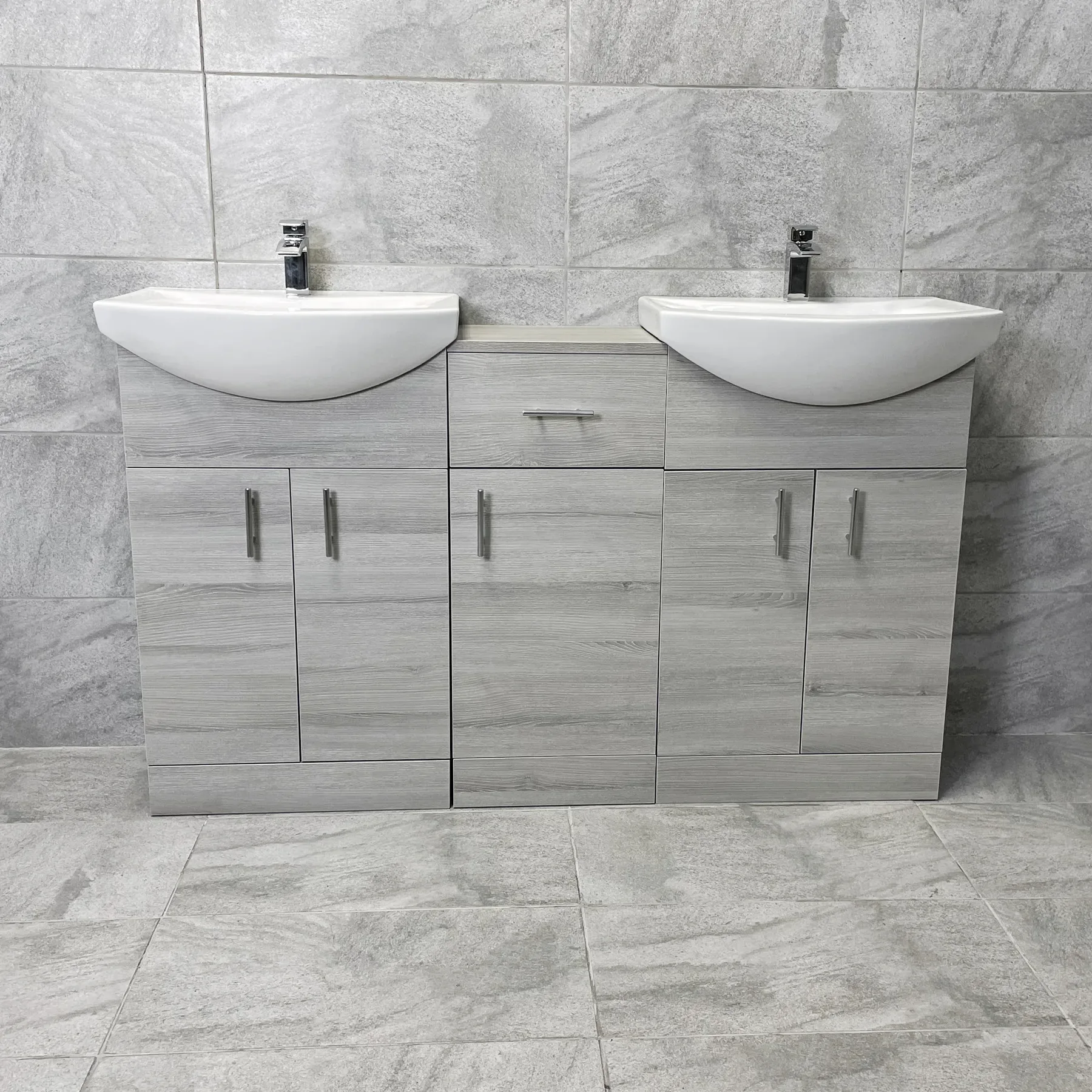 Mediterranean 1450 Double Basin Sink Vanity Unit Set Bathroom Grey Ash Finish