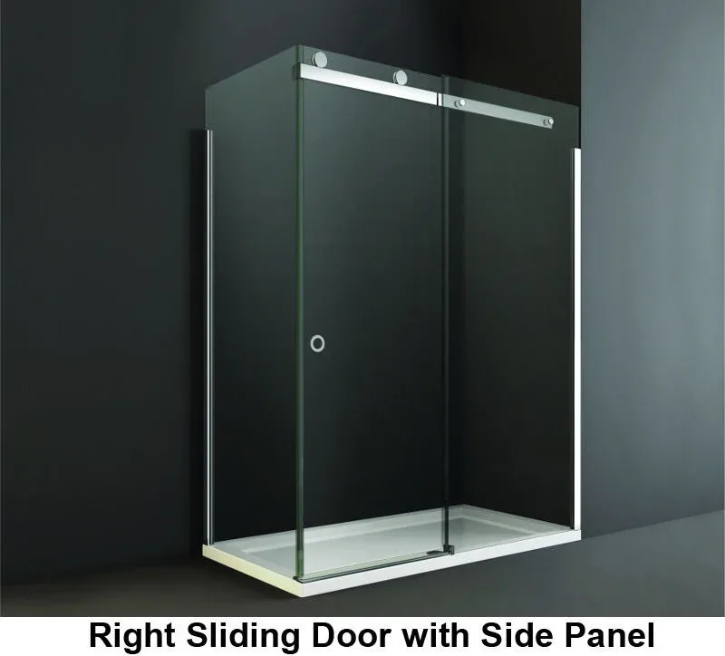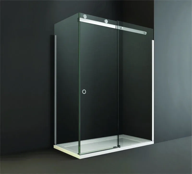 This spectacular sliding door shower enclosure makes a definite style statement. Contemporary style lovers will delight in the optional smoked black glass and its roller action.