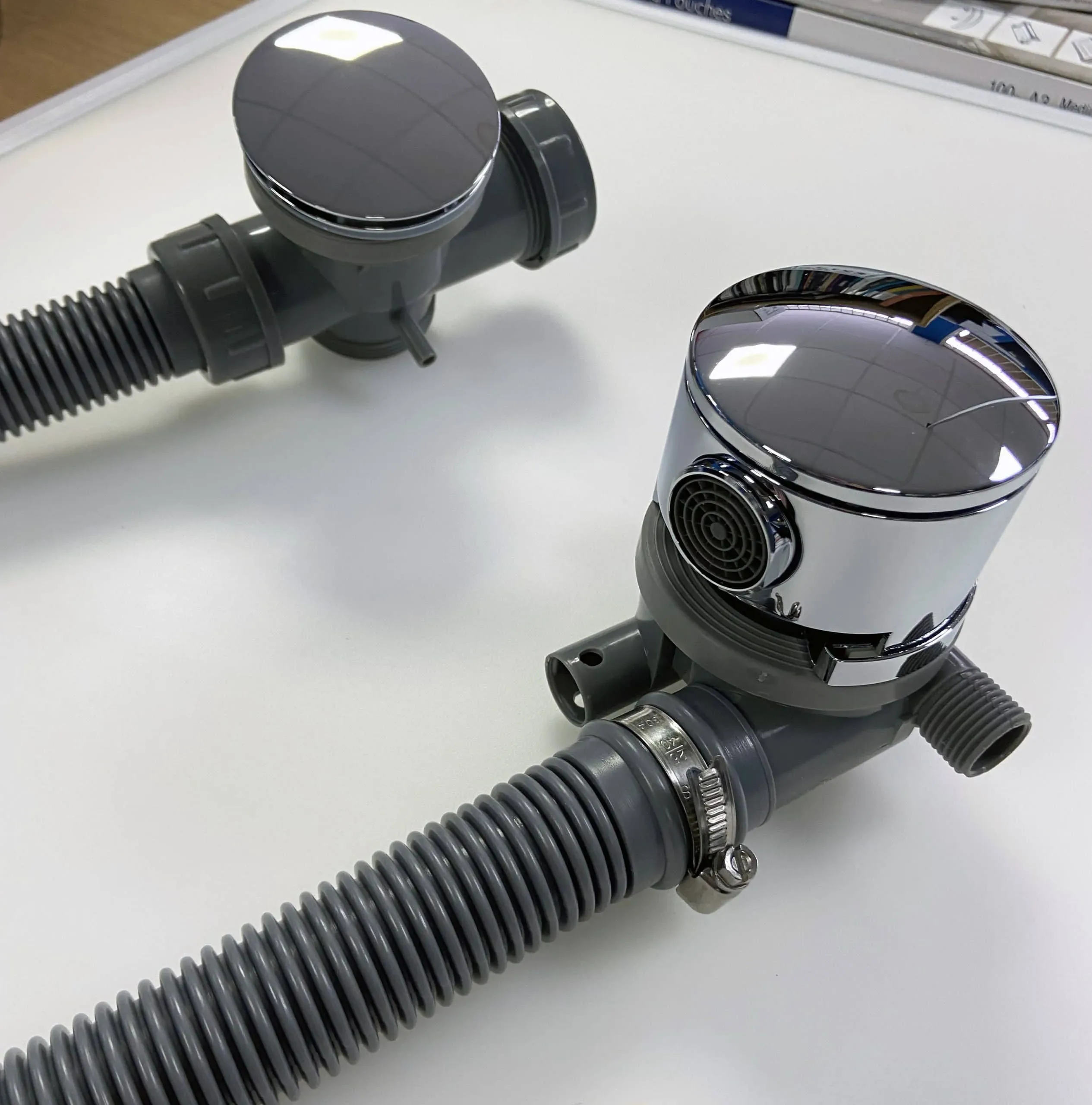 The filler and waste both have an ABS body so they won’t rust and keeps cool when filing a hot bath