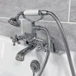 Sylvia Cross Head Traditional Bath Shower Mixer Tap Victorian Chrome Telephone