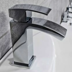 Tegan Modern Curved Bath Shower Mixer & Basin Mono Mixer Tap + Wastes
