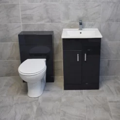 Tess Anthracite Square Vanity Unit Ceramic Basin & Meghana Comfort Height Toilet