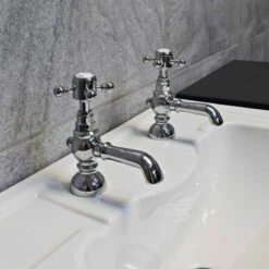 Cammie Traditional Cross Head Basin Pillar Taps Chrome & White