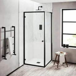 Noir Matt Black 800mm Hinged Shower Door Black Frame 8mm Glass + Tray Option