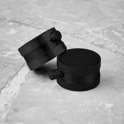 Core Matt Black Thermostatic Round Rigid Riser Shower Valve Two Heads