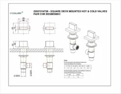 Ex-Bathstore Square Deck Mounted Chrome Hot And Cold Square Panel Valves