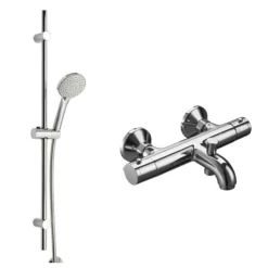 Leo Thermostatic Round Twin Head Shower Set Cool Touch TMV Approved