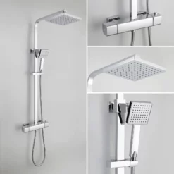 Lyla Chrome Square Thermostatic Bathroom Bar Mixer Valve Shower Set Dual Head