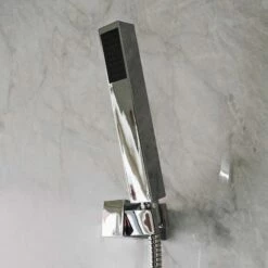 Cubico Navarre Square 2 Outlet Chrome Finish Shower Set Inc. Valve, Rail, Head