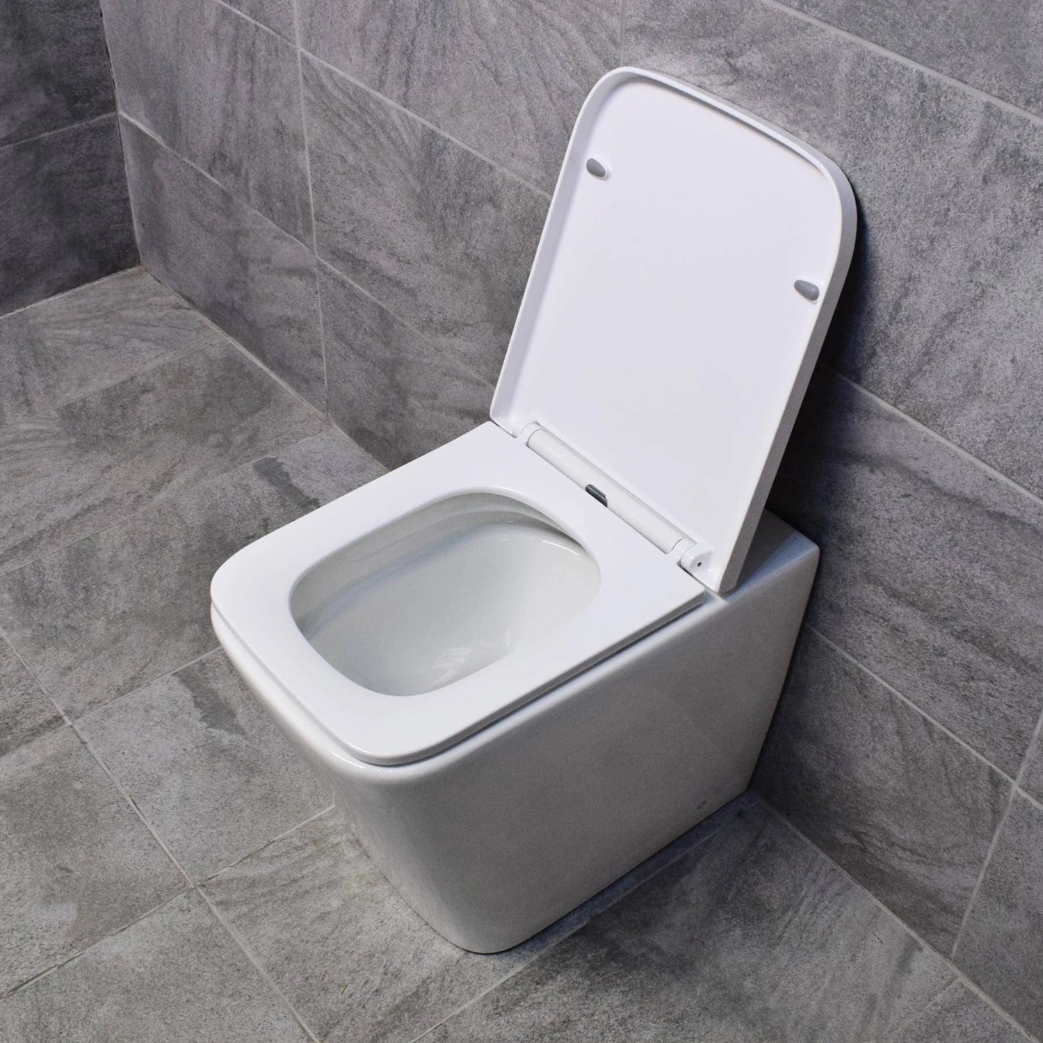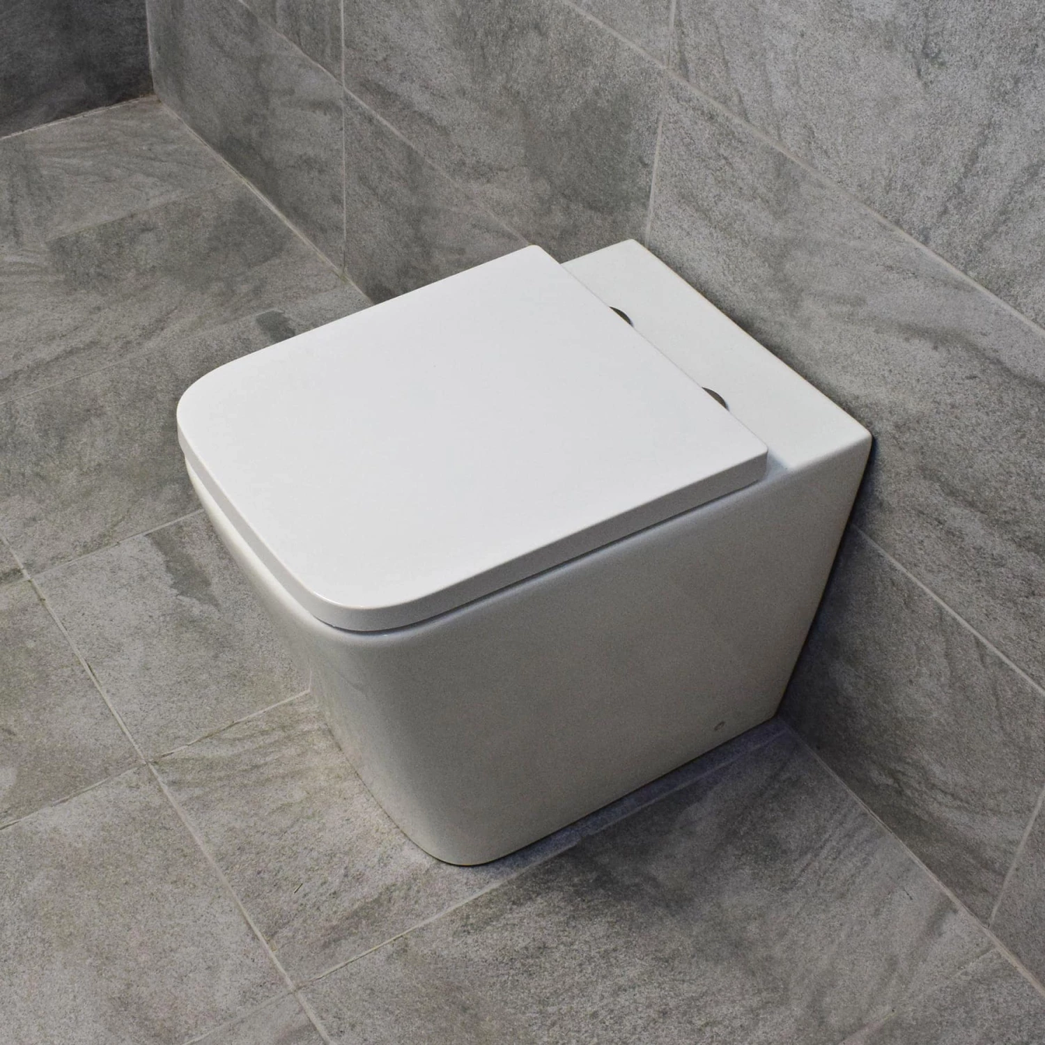 Modern square style design short projection toilet pan, suitable for use with concealed cisterns.