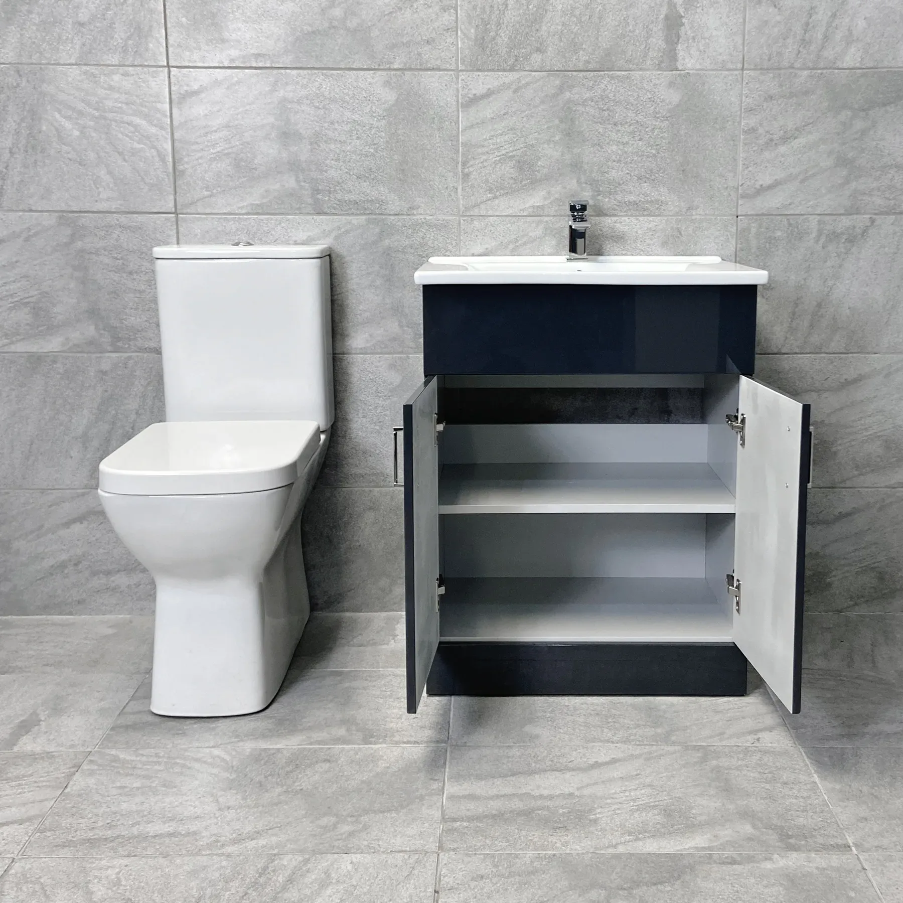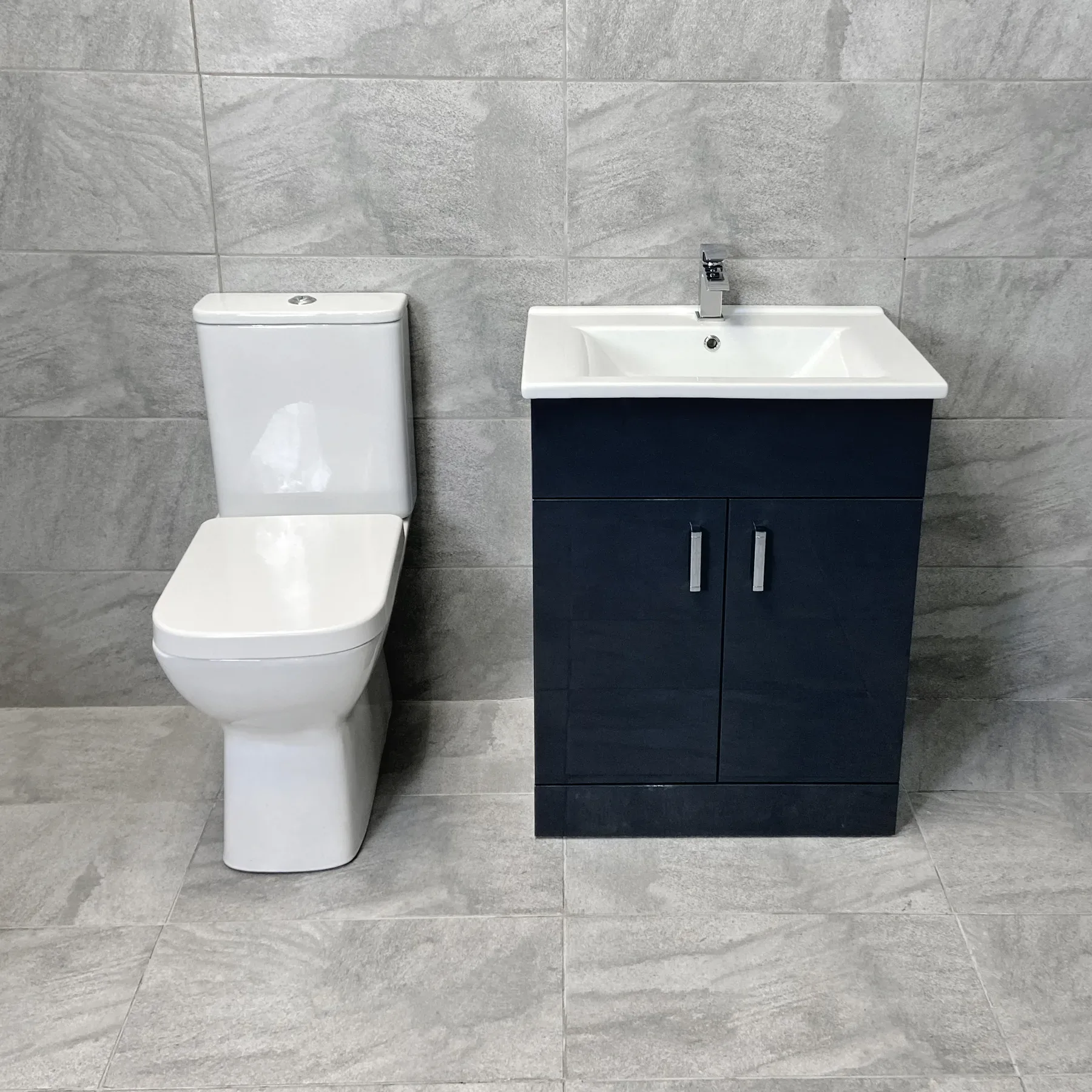 Tess Anthracite Square Vanity Unit Ceramic Basin & Meghana Comfort Height Toilet Set