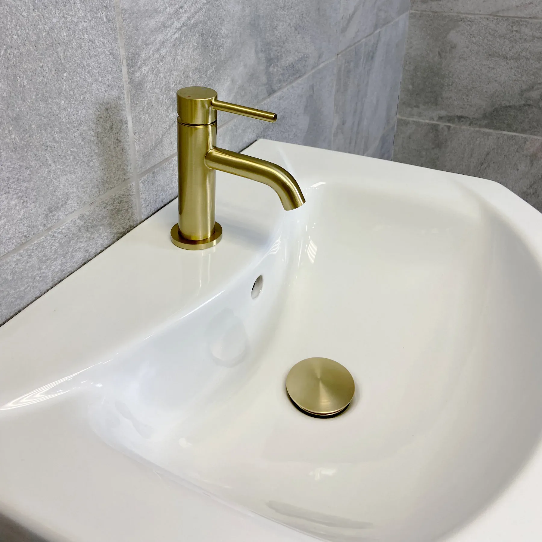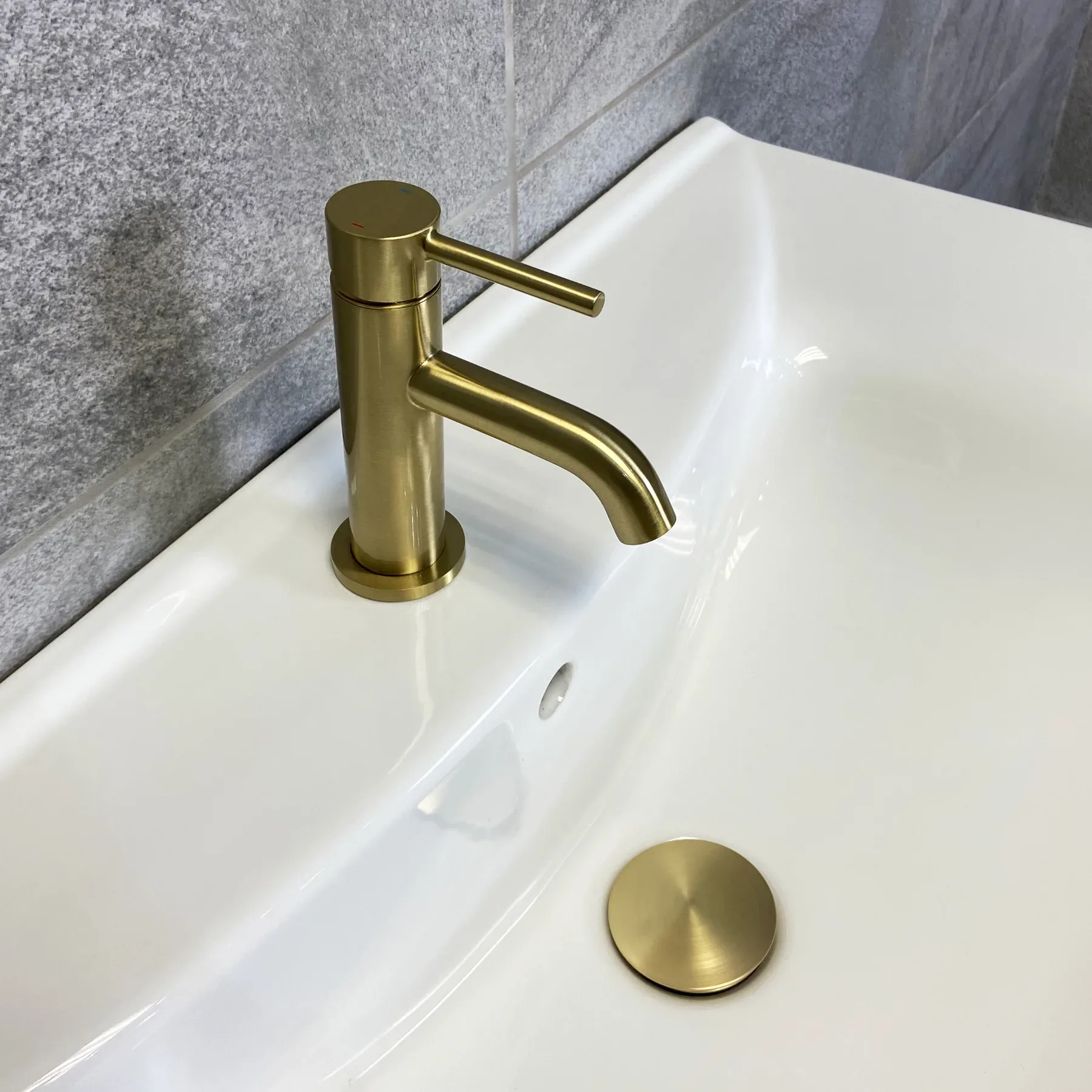 Optional Brushed Brass Basin Tap with matching click clack waste