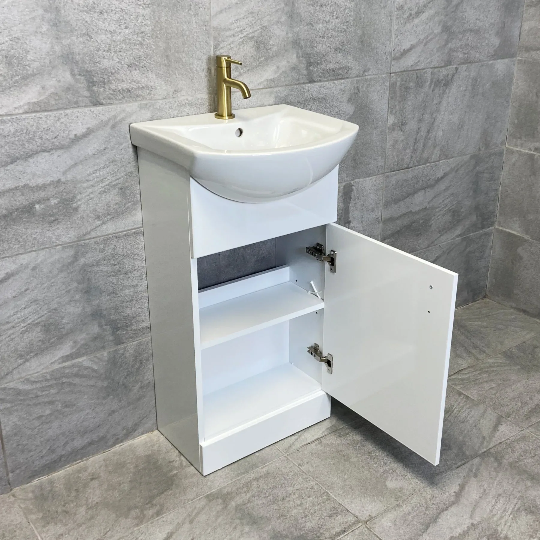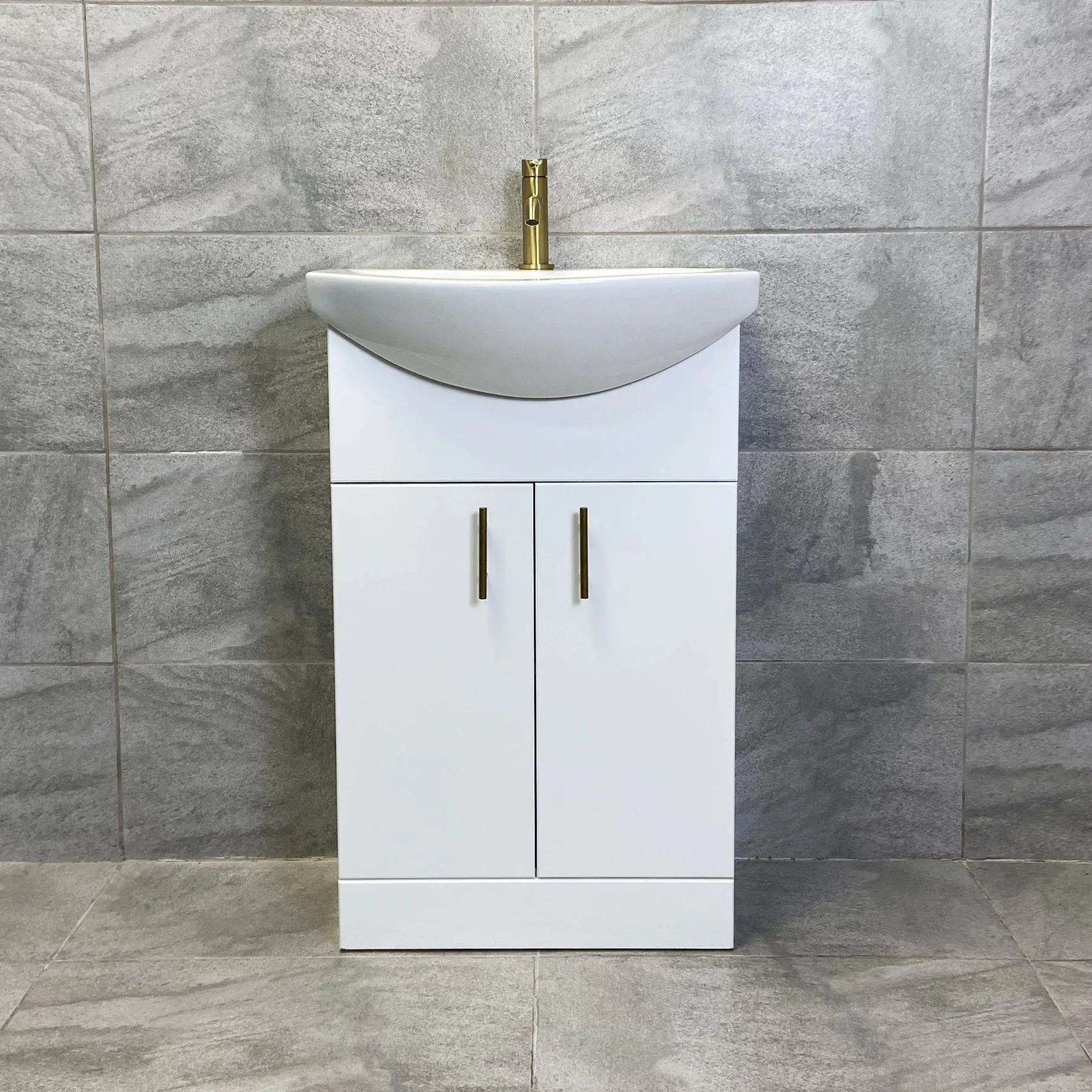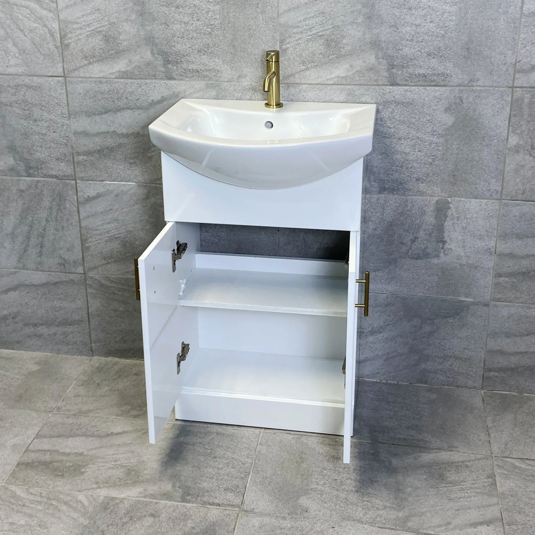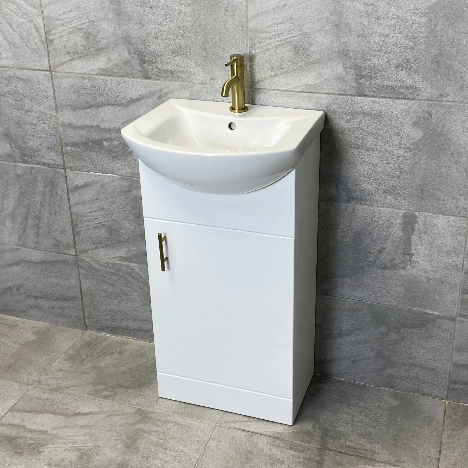 Vanity Unit Bathroom Sink Basin Storage White with Brushed Brass Handles