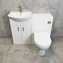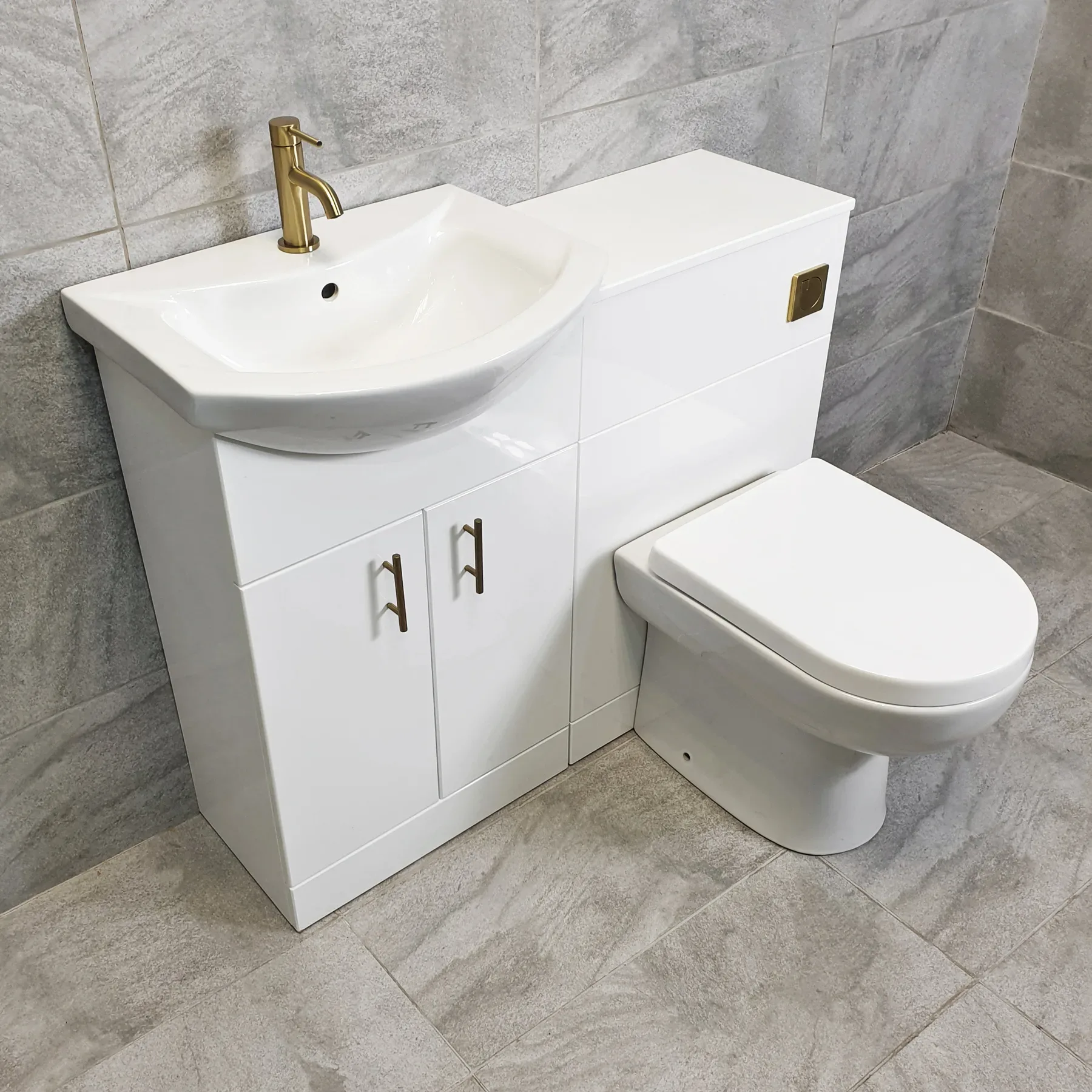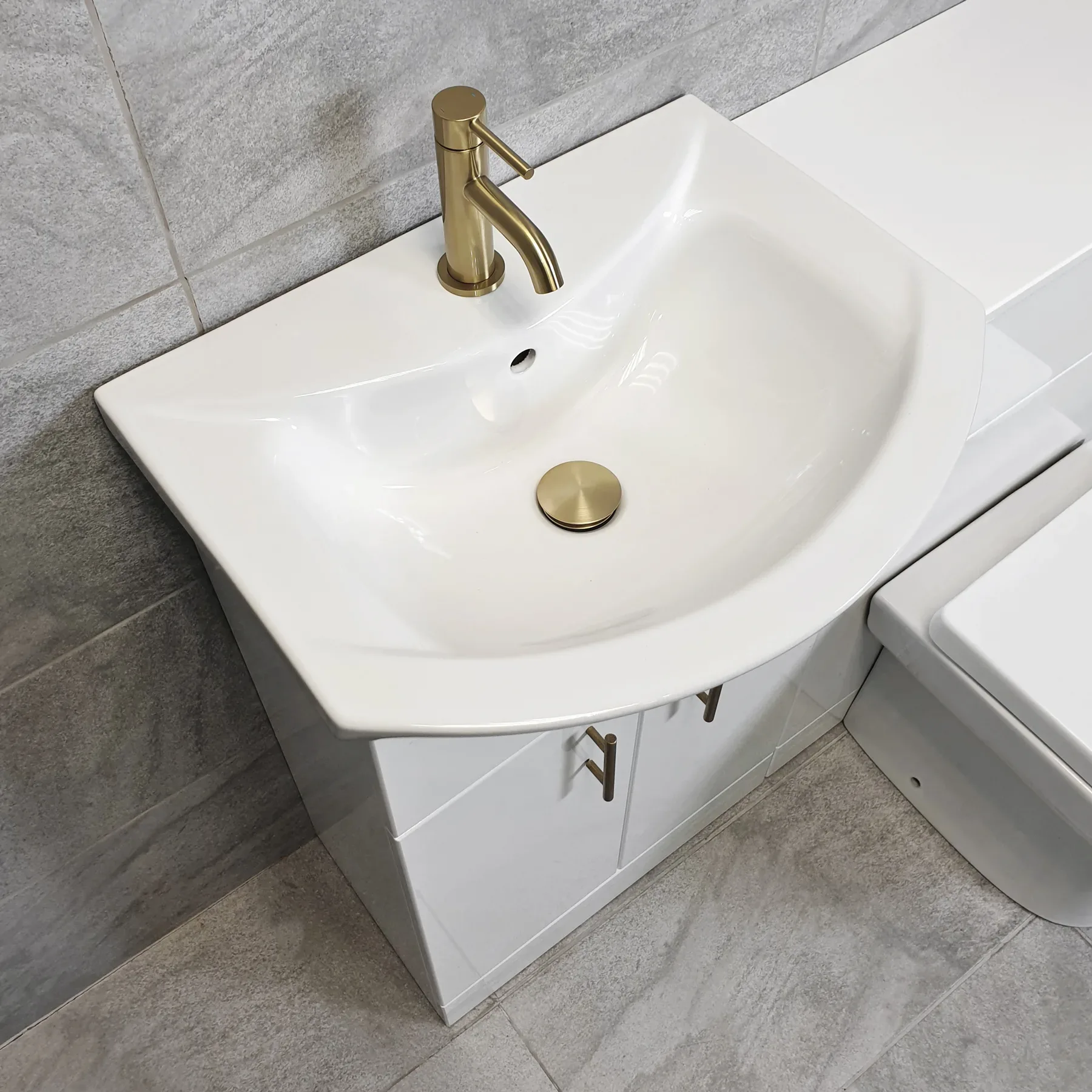 White 1050mm Bathroom Vanity Suite with Brushed Brass Handles